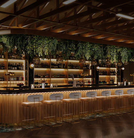 Low and moody. Enough to see who you’re with, but soft enough to lean closer. Light bounces off velvet, glass, and gold without overpowering the room.